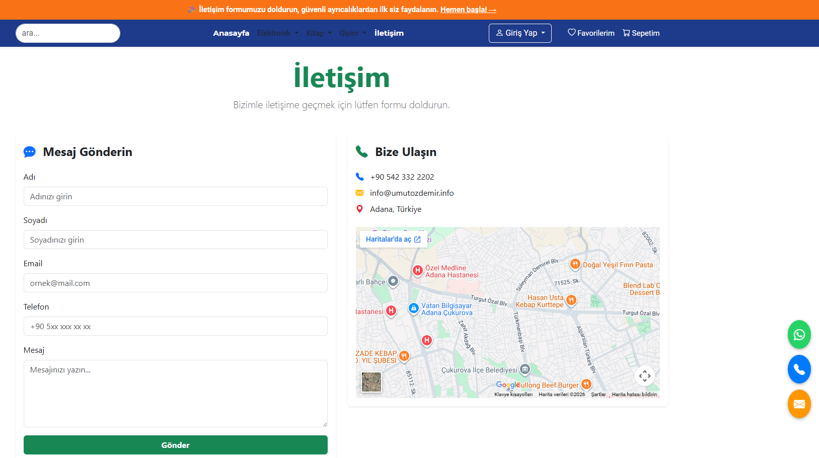 Hızlı Rezervasyon/İletişim: Kullanıcıların işletmelere doğrudan WhatsApp veya dahili form üzerinden ulaşabilme imkanı.