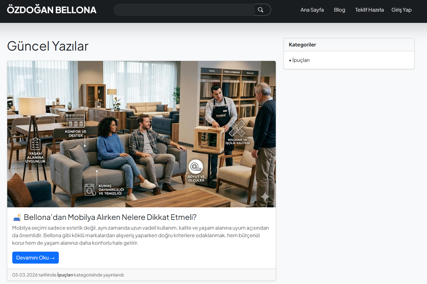 "Özdoğan Bellona, mobilya perakendeciliğinde geleneksel satış süreçlerini dijitalleştirmek amacıyla tasarlanmış, entegre bir kurumsal platformdur."
